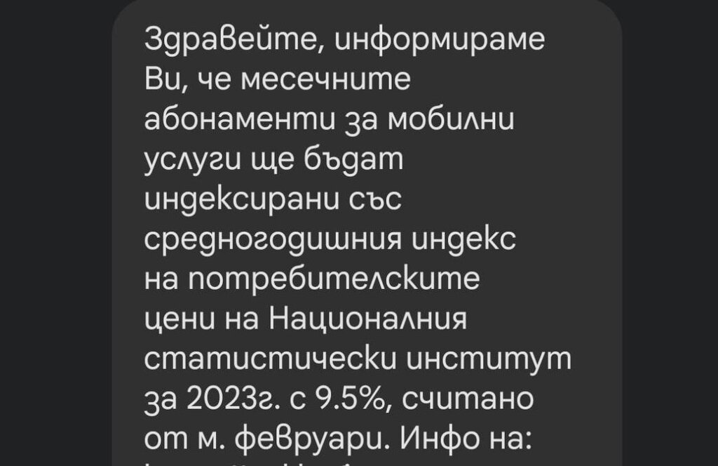 Може би сте част от потребителите, които са получили съобщение за индексиране на месечните абонаменти със средногодишния индекс на цените на Националния статистически институт за миналата година. Един от операторите ще индексира цените с 9,5%.