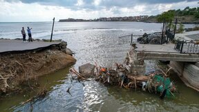 Междувременно в Ахтопол проливните дъждове активираха на пет места свличане на земни маси. Четири от тях са по крайбрежната алея: