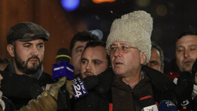 Протестиращи шофьори на път, водещ към Букурещ, в Афумати, Румъния, 15 януари 2024 г.