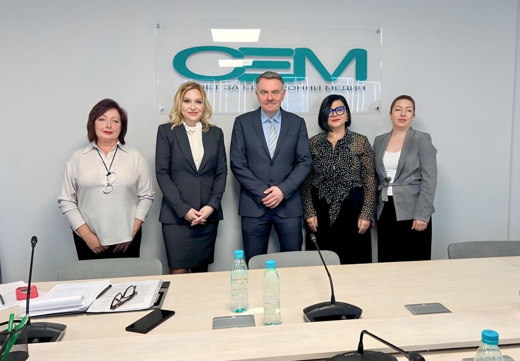 Генералният директор на БНР Милен Митев (вляво) и генeралният директор на EBU Ноел Къран (четвърти отляво надясно) се срещнаха с членовете на СЕМ